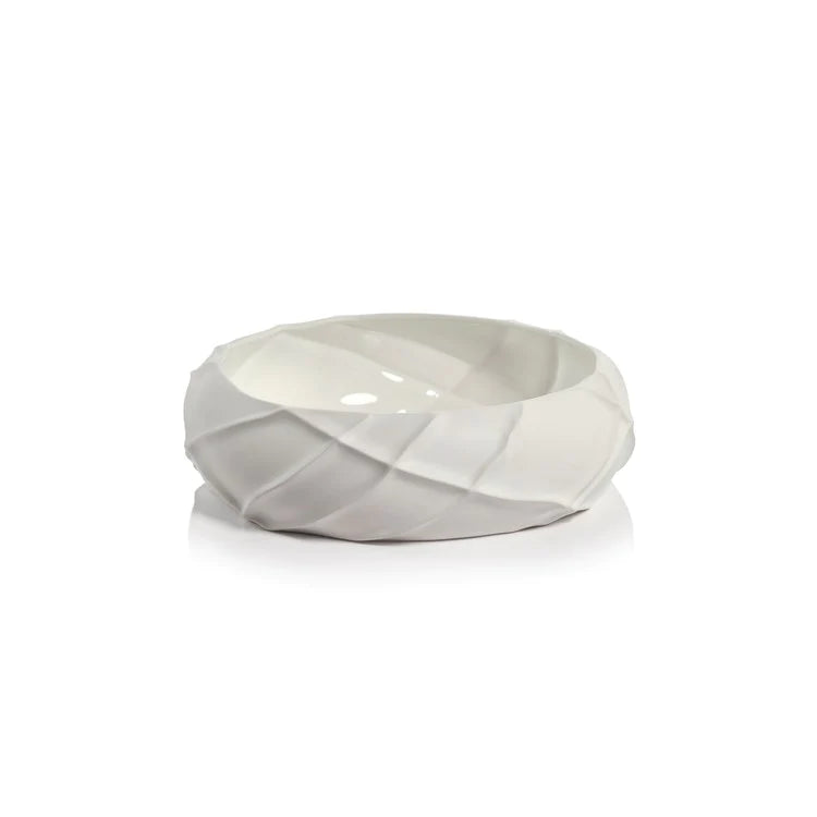 The Belize Ridged Bowl, crafted from the finest ceramic, boasts a matte white finish and textured exterior, lending a classic contemporary design. Perfect for both serving food and adding a decorative touch to any space. Expertly crafted for timeless elegance.