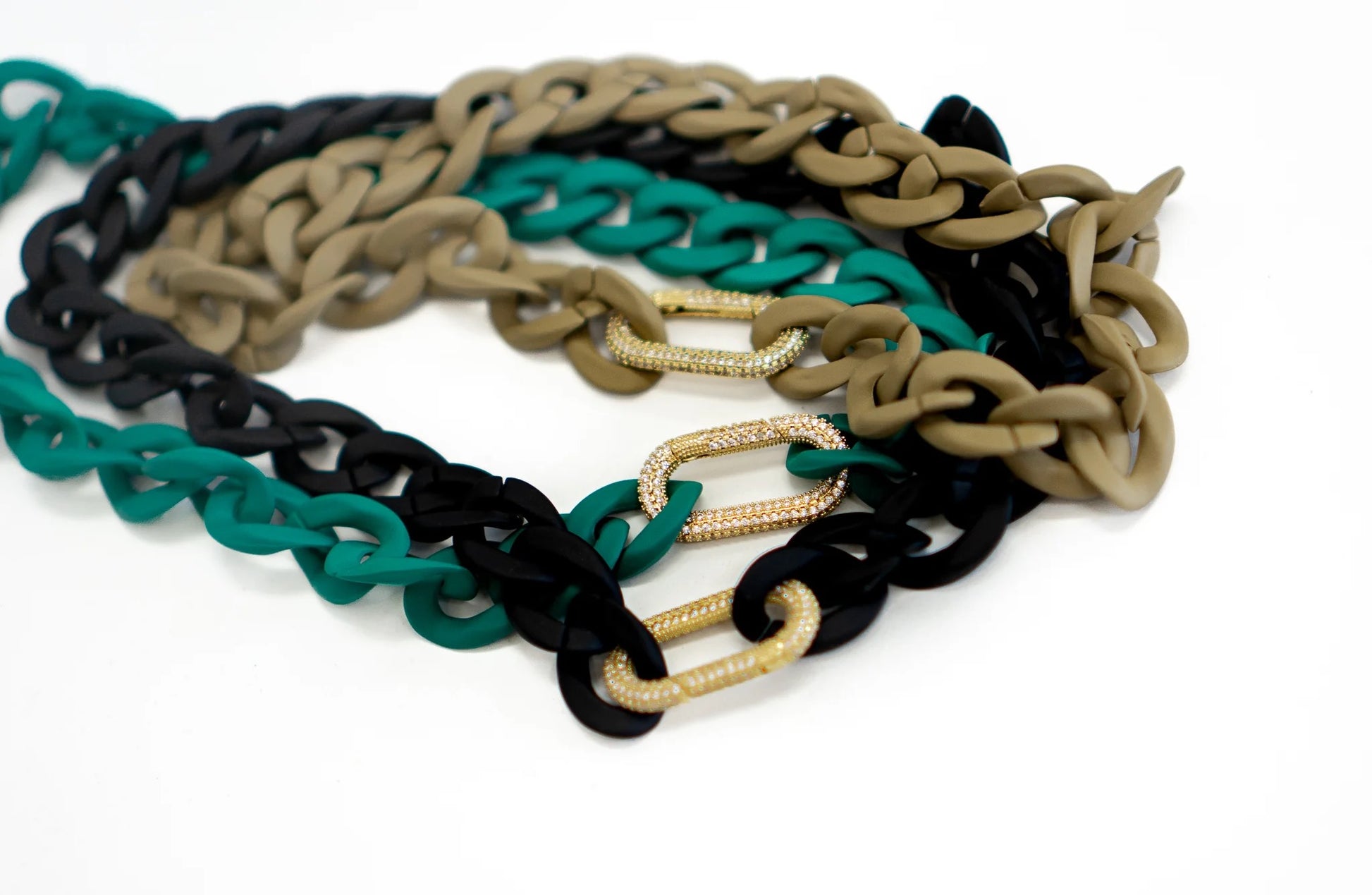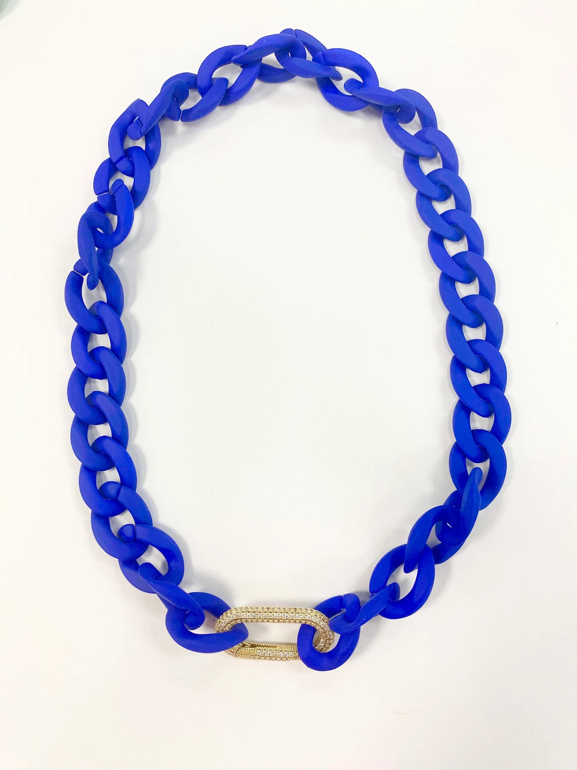 Escape to paradise with our Cabana Necklace. This resort-chic piece features a front gold clasp and vibrant, lightweight chain links. Indulge in luxury with this statement accessory.