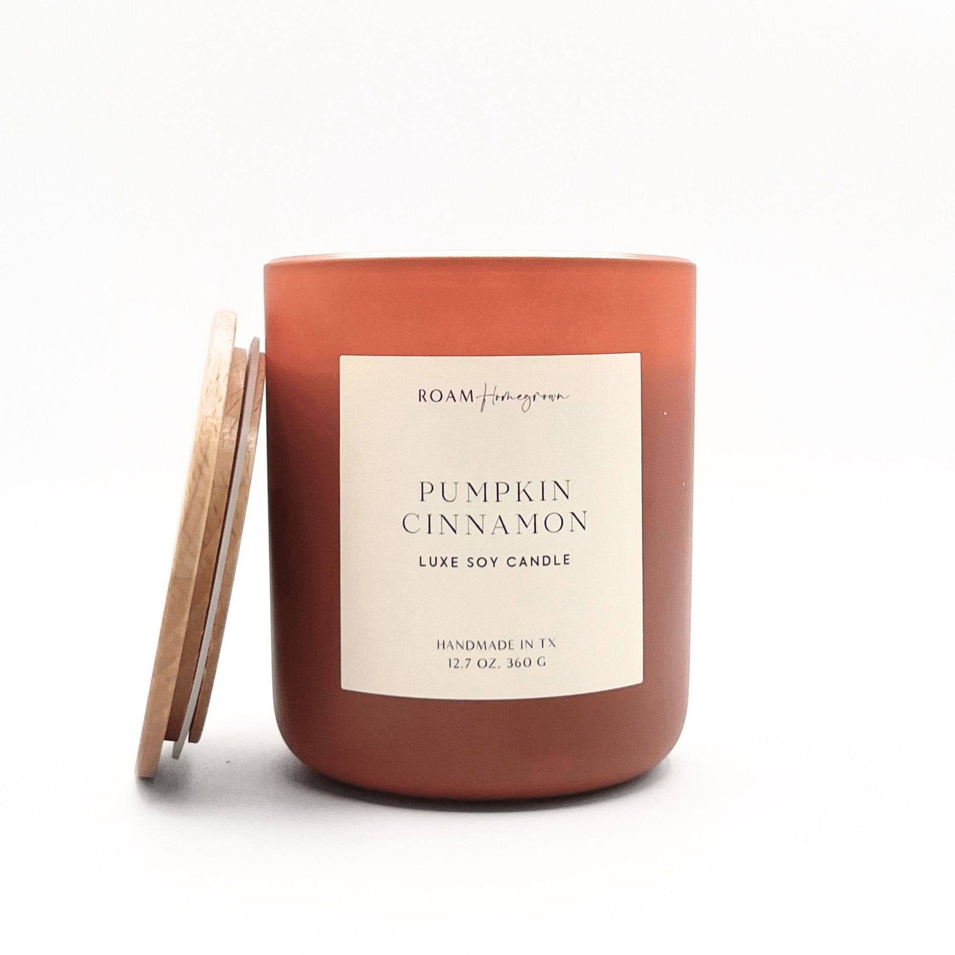 Pumpkin + Cinnamon Bestselling Fall Soy Candle - The warm aroma of a pumpkin chai on a blustery autumn day. Notes of pumpkin, cardamom, vanilla, brown sugar and cinnamon.
